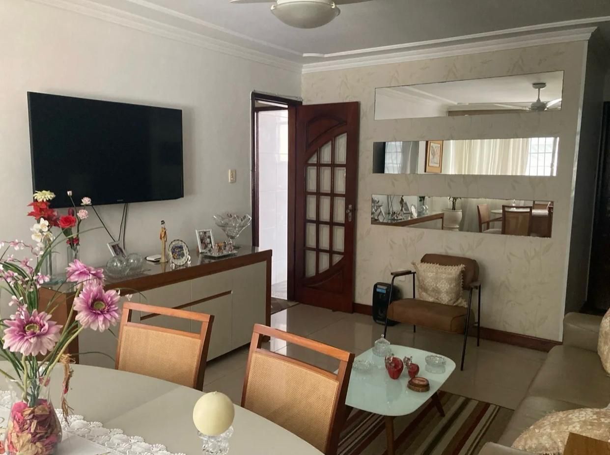 O imóvel conta com dois quartos amplos e bem iluminados, sala de estar arejada com vista parcial para o mar, cozinha funcional, área de serviço, banheiro social e banheiro de serviço. Possui ainda uma vaga de garagem, garantindo praticidade no dia a dia.